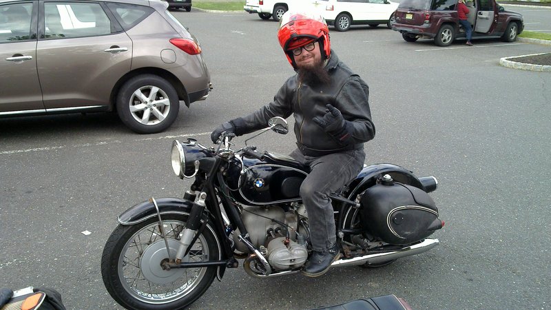 William giving the horns from the seat of his R69S
