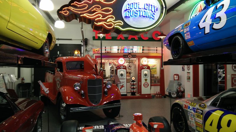 old Tow Truck, Texaco gas station front and pumps
